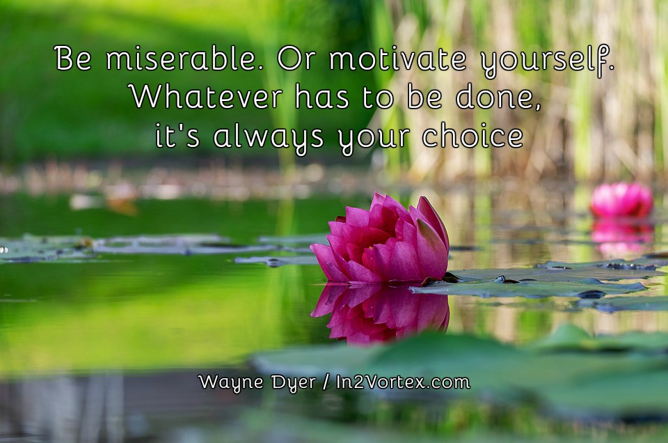 “Be miserable. Or motivate yourself. Whatever has to be done, it’s always your choice. ” Wayne Dyer.