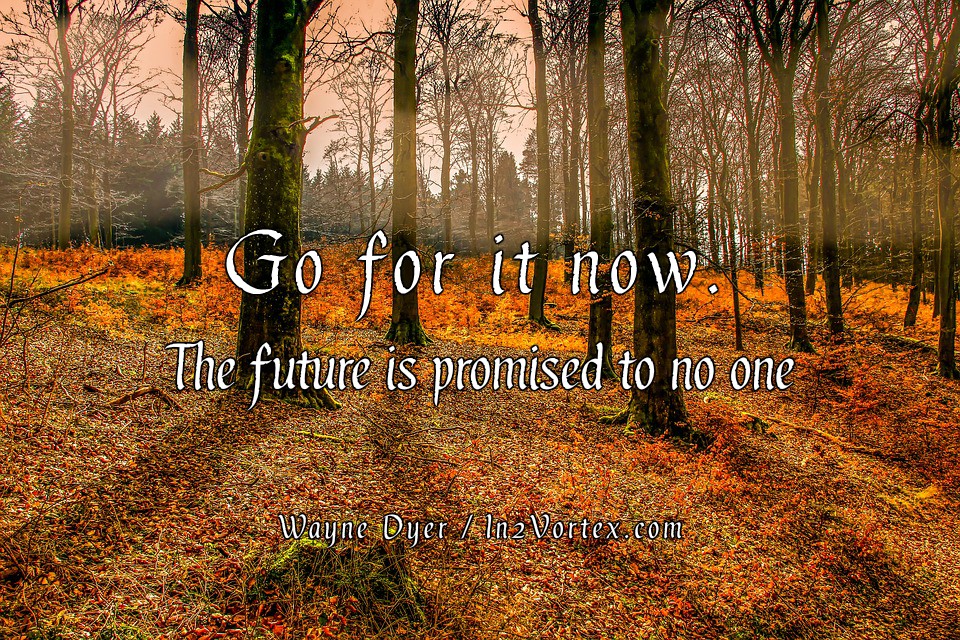 “Go for it now. The future is promised to no one.” Wayne Dyer.